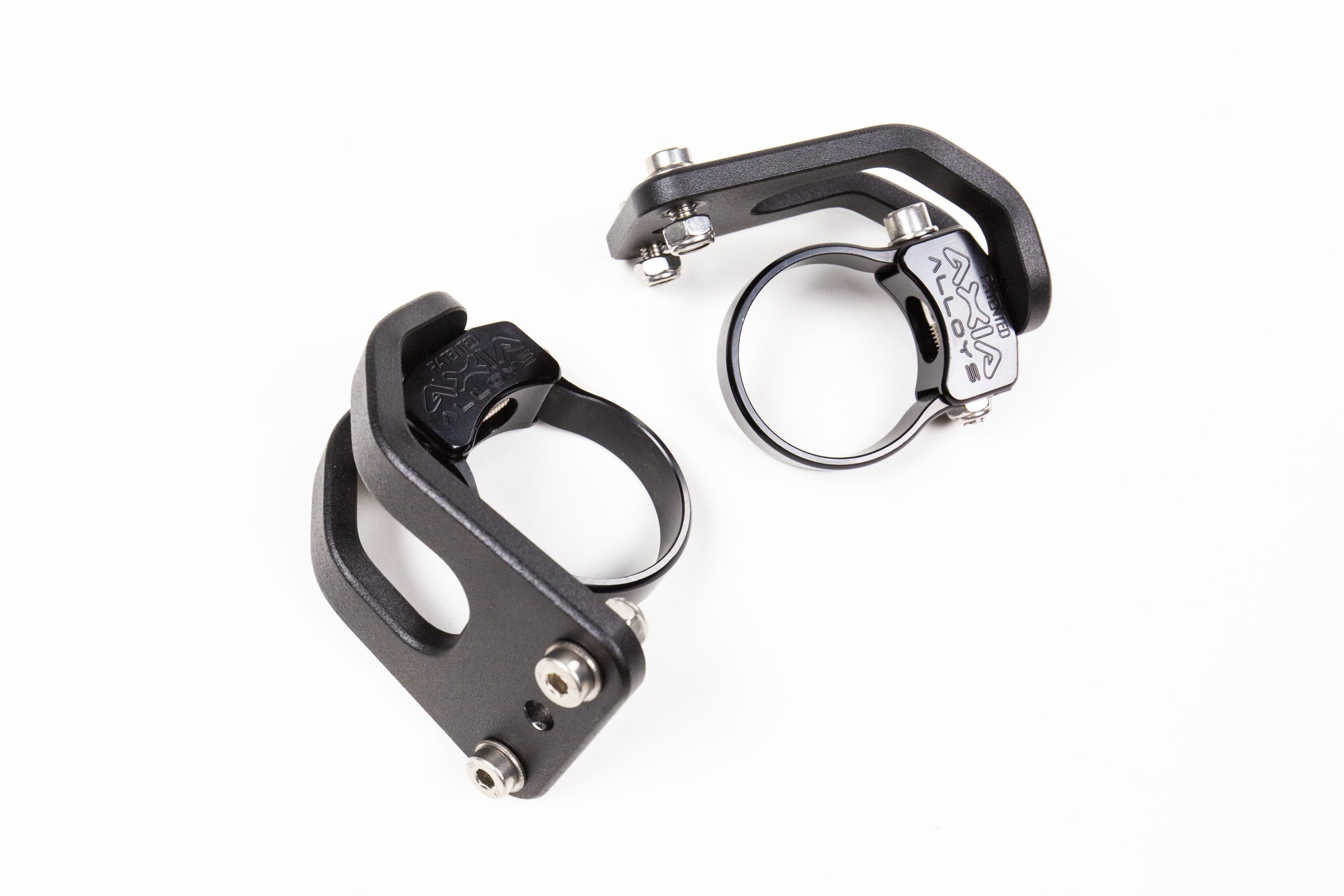 Mount roof racks off of the side of the cage, under aluminum and low profile plastic roofs using the Axia Alloys strap clamps.